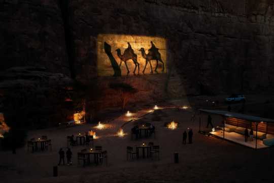 تصل التجربة إلى ذروتها بعرض مبهر يجمع الضوء والرمال والقصة في لوحة واحدة. تتحول جدران الوادي إلى شاشة طبيعية تُعرض عليها رحلة الأرض — من تشكّلها الأول إلى صعود حضارات العلا. وبفن رسم الرمال وتقنيات العرض السينمائي، لا تشاهد مجرد عرض… بل تعبر بوابة إلى زمن آخر.